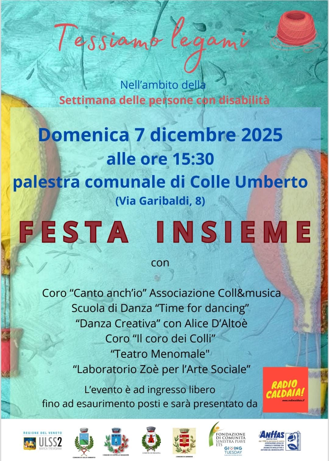 In occasione della settimana delle persone con disabilità domenica 7 dicembre 2025 alle ore 15:30 nella palesta comunale di Colle Umberto (Via Garibaldi, 8) ci sarà l'evento "Tessiamo Legami" in collaborazione con:
